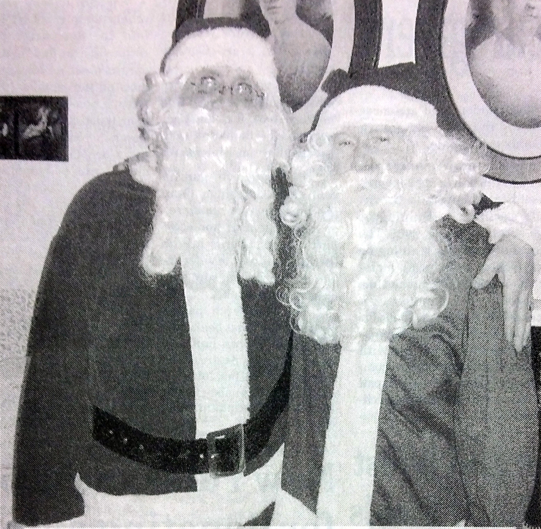 "TWISTED" SANTAS: Last weekend in Casey was the scene of a packed Community Building where the "Better Keep Our Day Jobs" players put on the fourth annual dinner theater production of "Twas With A Twist." The hilarious musical included many local talents including Barry Orness, left, of Casey playing the "real" Santa and Pete Fay, right, of Adair, who played Ezra "Pa" Inniscap and the "fake" Santa. Some other cast members included Gretchen Umbaugh ("Ma" Inniscap), Rita Elgin (Magic Myrtle), Jade Weber (Betsy Inniscap), all of Adair, Kayla Plagman (Sam Neer), Jeannie Larson (Mrs. Claus), Pat Pettinger (The Mouse), Shawna Tuffin (Babs Inniscap), Steven Tuffin (Mop Top), all of Casey, and a host of elves and Sugar Plum Fairies. The group also puts on a variety show each spring. | | | | | | | | See more Yester Years | |