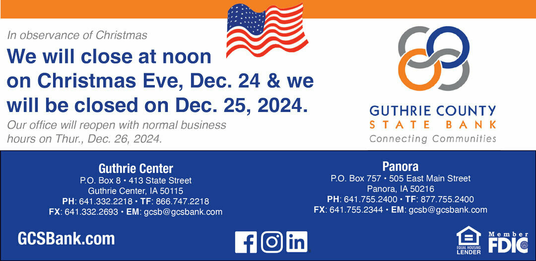 | | To advertise in the Times Vedette email or any of our printed Guthrie County publications, contact Kerry Jacobsen at kerry@iowalivingmagazines.com, or call 515-619-2788.