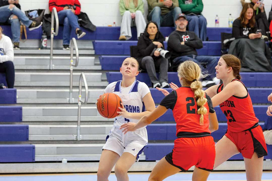 PICTURED: No. 5 Neele Wirths gets hounded by Creston defenders in a previous game. Photo by Betty Cooper | |