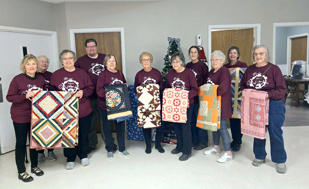 PICTURED: Stitch & Chatter members, front row: Nancy Smith, Ellen Campbell, Mary Morgan, Candy Thompson, Cheri Gephert and Karen Onken. Back row: Rowena Storesund, Casey Brown, Kristi Holz and Karen Kersbaum.