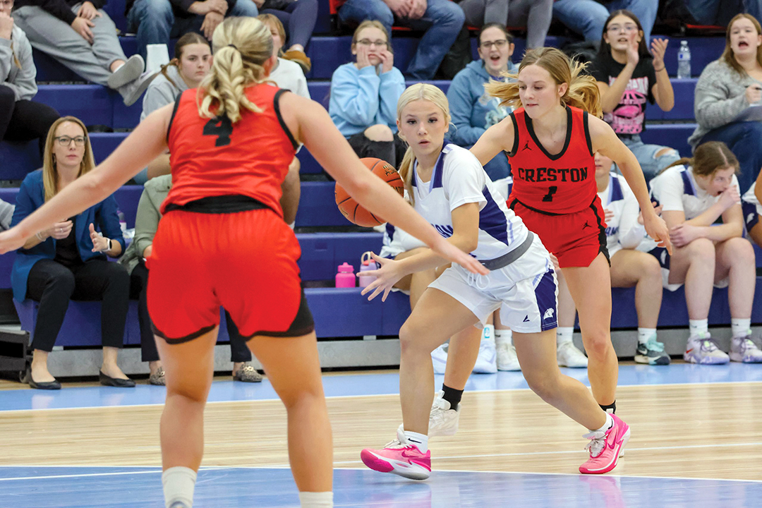 PICTURED: Panorama's No. 3 Lydia Leishi drives the lane in a game against Creston earlier this season. Photo by Betty Cooper
