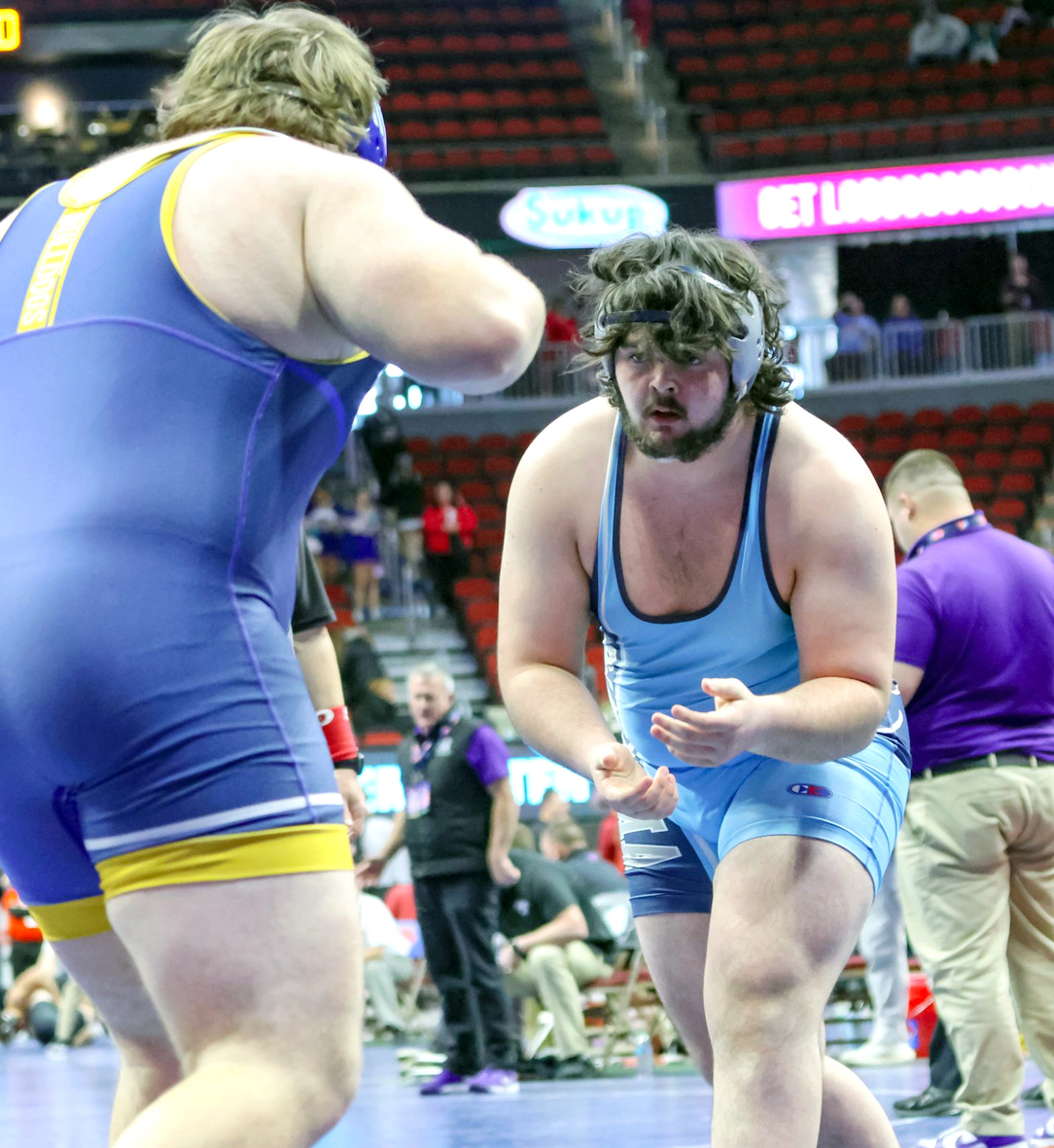 Joel Cooper (285) was the last remaining Panorama wrestler heading into Friday, Feb. 21, at the IHSAA state wrestling tournament in Des Moines. Cooper lost to Jacob Bishop of Hinton in the consolation fourth round, 3-0.