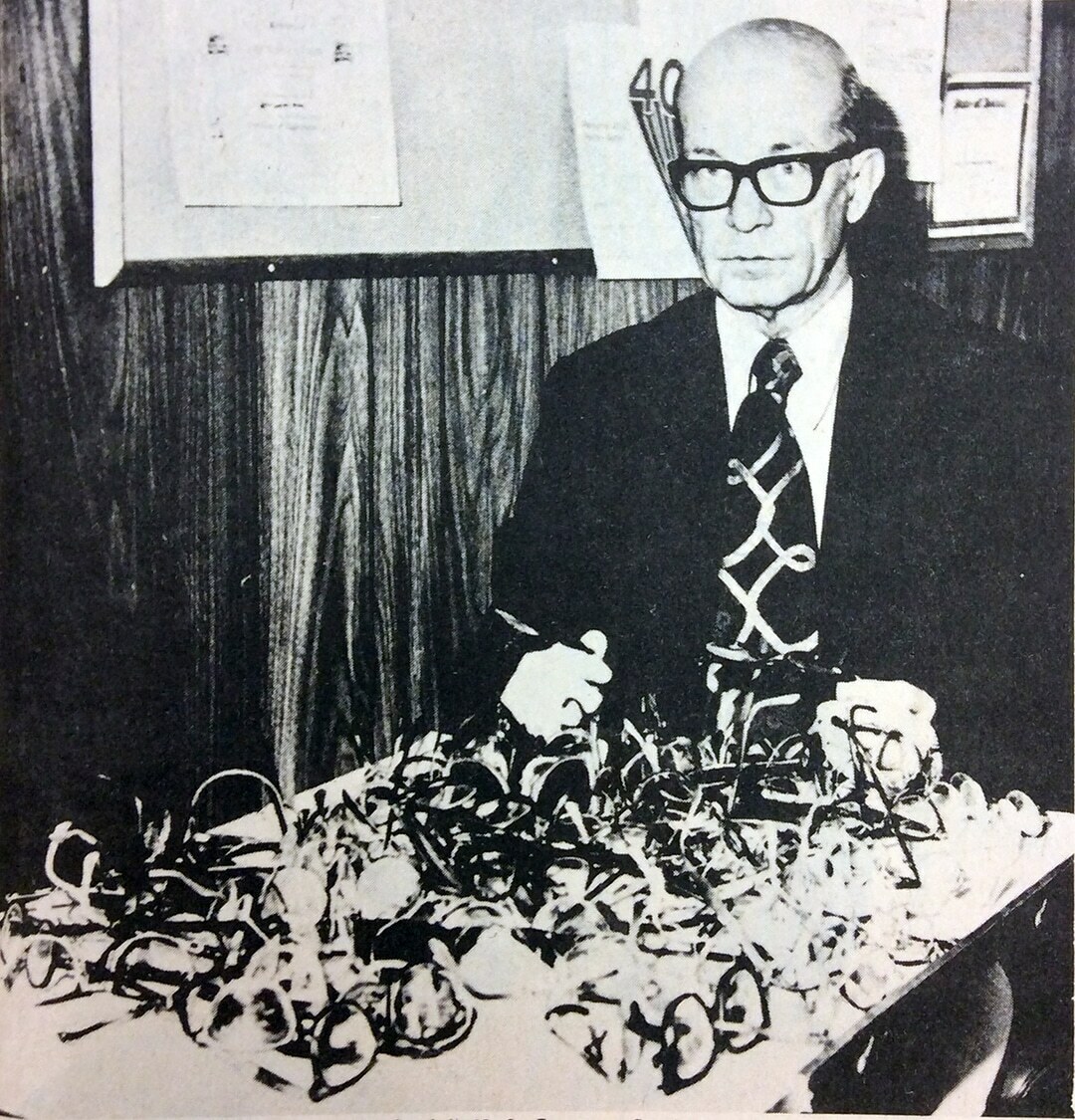 LIONS PORTION. Wayne Clark of Guthrie Center, district governor of the Iowa Lions Club, displays a portion of more than 200 eyeglasses collected in a week by Guthrie Center Lions. The glasses will be given to preserve eyesight of deprived persons in the U. S. and around the world. Glasses can be deposited at the bank, Iowa Electric or the newspapers. | | | | | | | | See more Yester Years | |