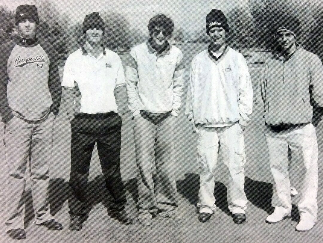 ALL-CONFERENCE. Earning all-conference golf honors as the top five players at the West Central Conference golf tournament at Lake Panorama National Monday were, from left, Nate Crannell, Guthrie Center, Jake Waddle, Coon Rapids-Bayard, and Joe Wells, Justin Smool and Jaron Smool, all of Panorama. Justin Smool was medalist for the third straight year.