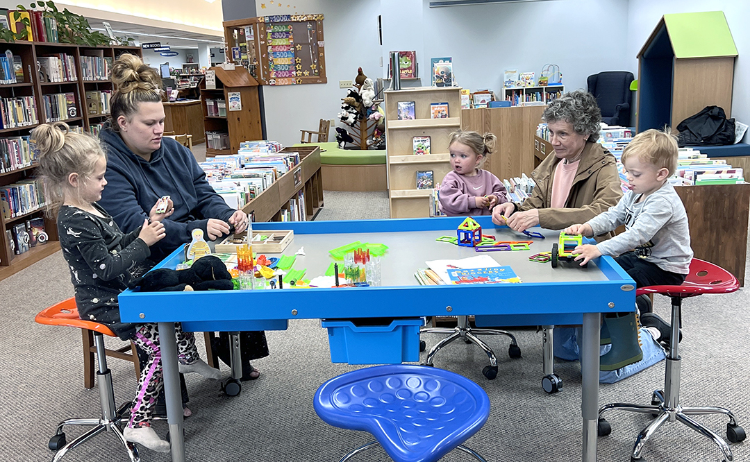 PICTURED: Following story hour, the STEM table is a popular place for the preschool crowd to hang out and play.