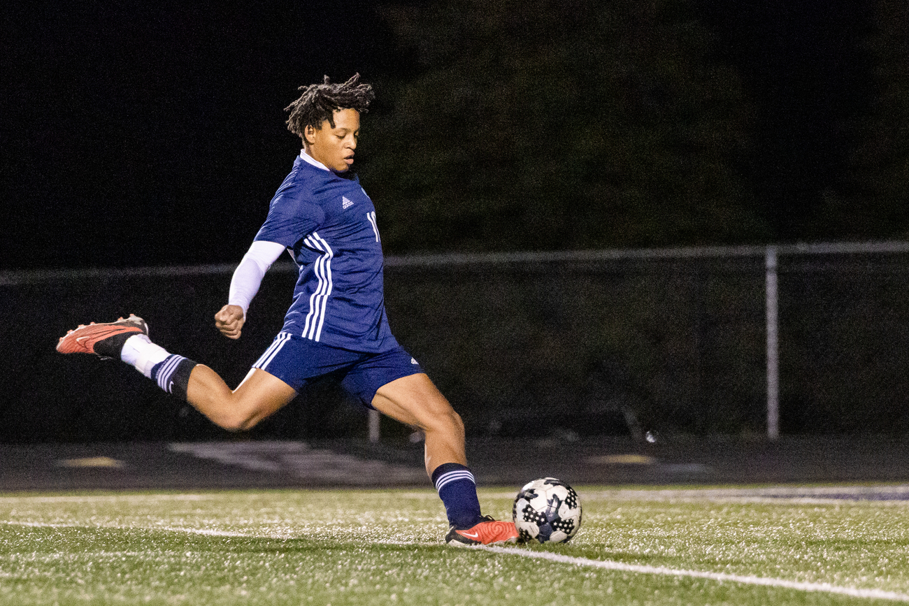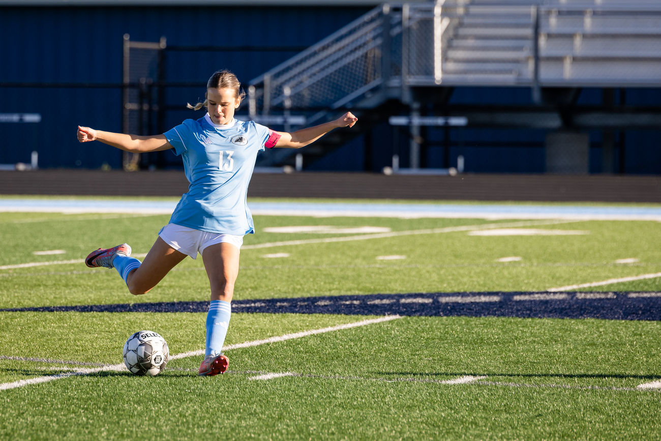 PICTURED: Captain Mia Waddle fires the ball out wide against East Sac County last week.