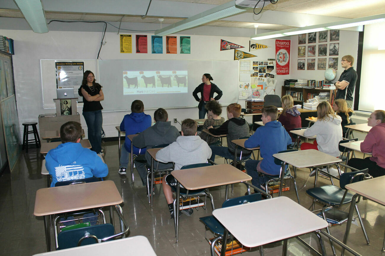 Thirteen ACGC FFA Chapter Officers and members traveled to the middle school on March 19 to present about the importance of agriculture and how FFA helps members prepare for careers in agriculture. Members presented about the following topics: soils evaluation, public speaking, creed speaking, livestock evaluation, general FFA and agriculture knowledge and agricultural career pathways for our students.