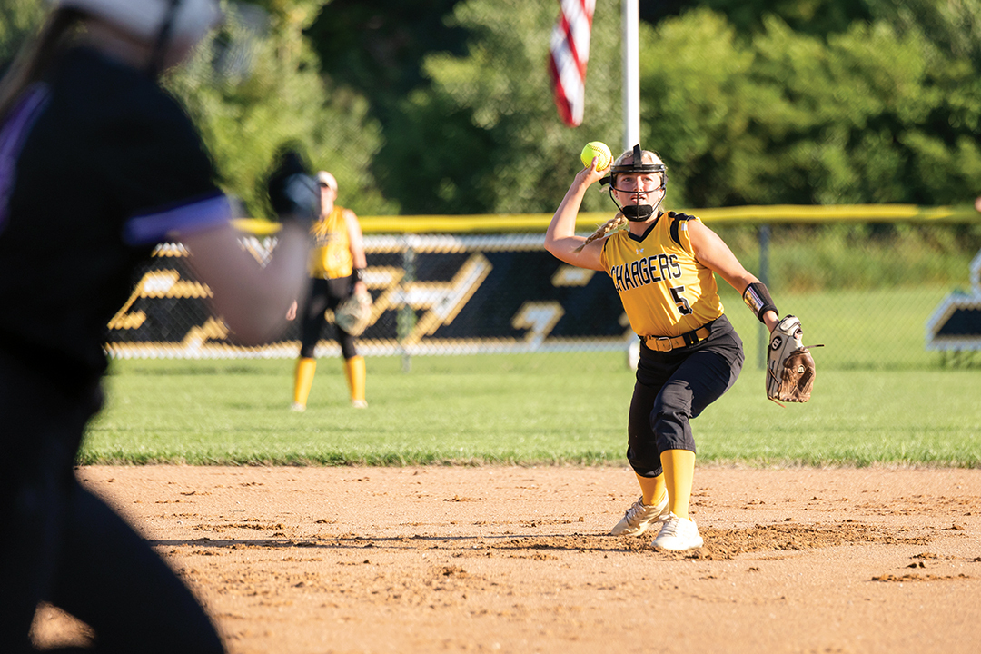 PICTURED: #5 Jayla Hoover pitches in a game earlier this season. Photo by Mark Reno | |
