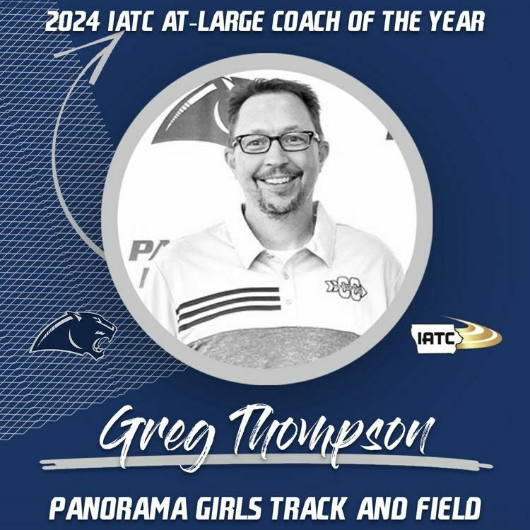 Panorama girls track and field head coach, Greg Thompson, was named 1A At-Large Coach of the Year by the Iowa Association of Track Coaches. Thompson and the Panthers experienced a great deal of success throughout the 2023-2024 season, with six Panorama athletes qualifying for the State Championship meet and Jaidyn Sellers placing in several events at the Drake Relays.