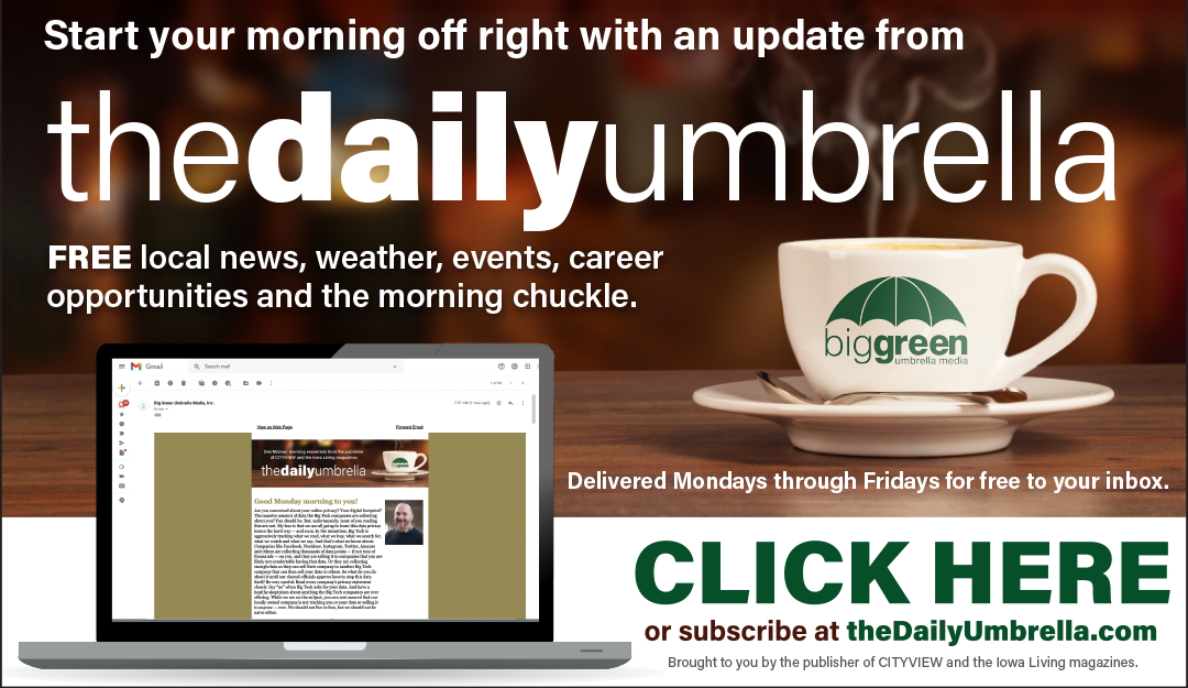 P.S. As a free newsletter, we rely on readers like you to grow our subscriber list. If you have a friend or coworker that you think would enjoy weekly highlights of any of our Iowa Living magazines or The Daily Umbrella, please share this email with them and they can subscribe by clicking the subscribe tab at IowaLivingMagazines.com.