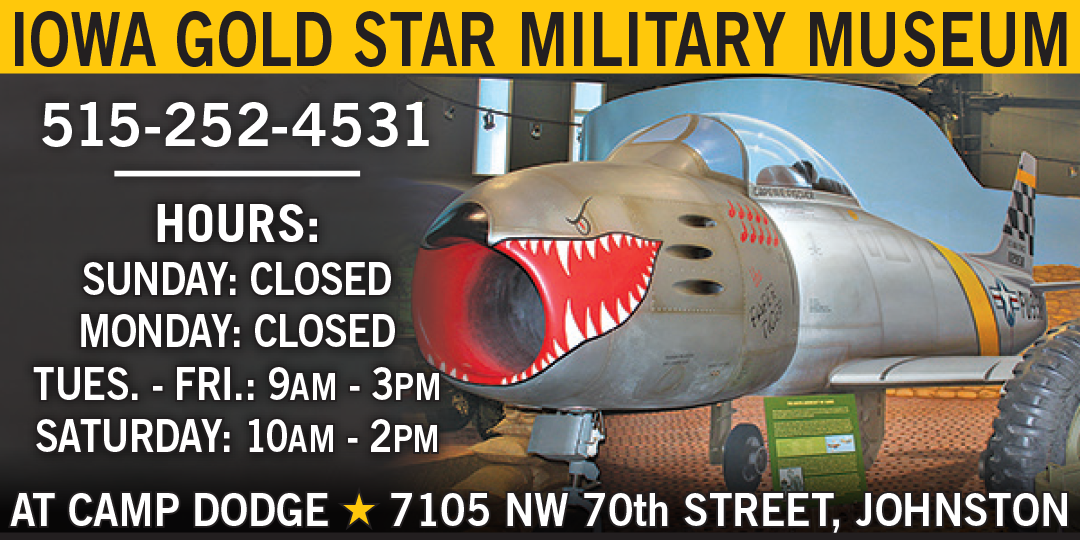 • Gold Star Mothers - Christmas Trees: These beautiful trees will be featured at the Iowa Gold Star Military Museum throughout the holiday season. The purpose of these trees is to honor those who paid the ultimate sacrifice in the line of duty. They also honor those who served and are no longer with us. If you interested in submitting a request for an ornament to represent your loved one, forms will be available at the museum.